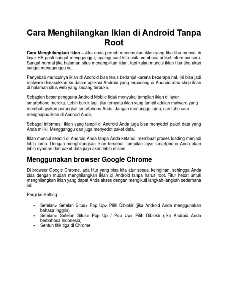 Chrome mempunyai fitur keren yang bisa digunakan untuk menghilangkan iklan. Cara menghilangkan iklan di android tanpa root 1. Tetapi bukan berarti ada iklan itu jelek. Cara menghilangkan iklan di android iklan yang muncul secara tiba tiba di layar hp pasti sangat menganggu apalagi saat kita sedang asyik membaca sebuah artikel informasi yang disukaimemang hal yang wajar jika sebuah halaman website menampilkan iklan tapi bila iklan muncul secara tiba tiba tentu akan sangat mengganggu ya. Caranya pun sangat mudah yakni masuk ke menu setting setelan situs munculanpop up pilih di blokir. Sekarang disini saya ingin membagikan sebuah tutorial mengenai cara untuk menghilangkan iklan yang mengganggu di hp android. Salah satu cara yang bisa digunakan yaitu dengan menghilangkan iklan yang tiba tiba muncul di android. Cara hilangkan iklan menganggu saat browsing. Berikut ini saya beberkan beberapa trik cara menghilangkan iklan di android kitkat jelly bean ics lollipop bahkan marshmallow paling baru mulai dari cara menghilangkan iklan android tanpa aplikasi sampai menggunakan aplikasi dan dengan root akan dibahas disini. Hampir semua kegiatan dan permasalahan selalu diselesaikan dengan bantuan alat elektronik yang satu ini. Tentu saja hal tersebut sangat mengganggu pengalaman berselancar di internet.